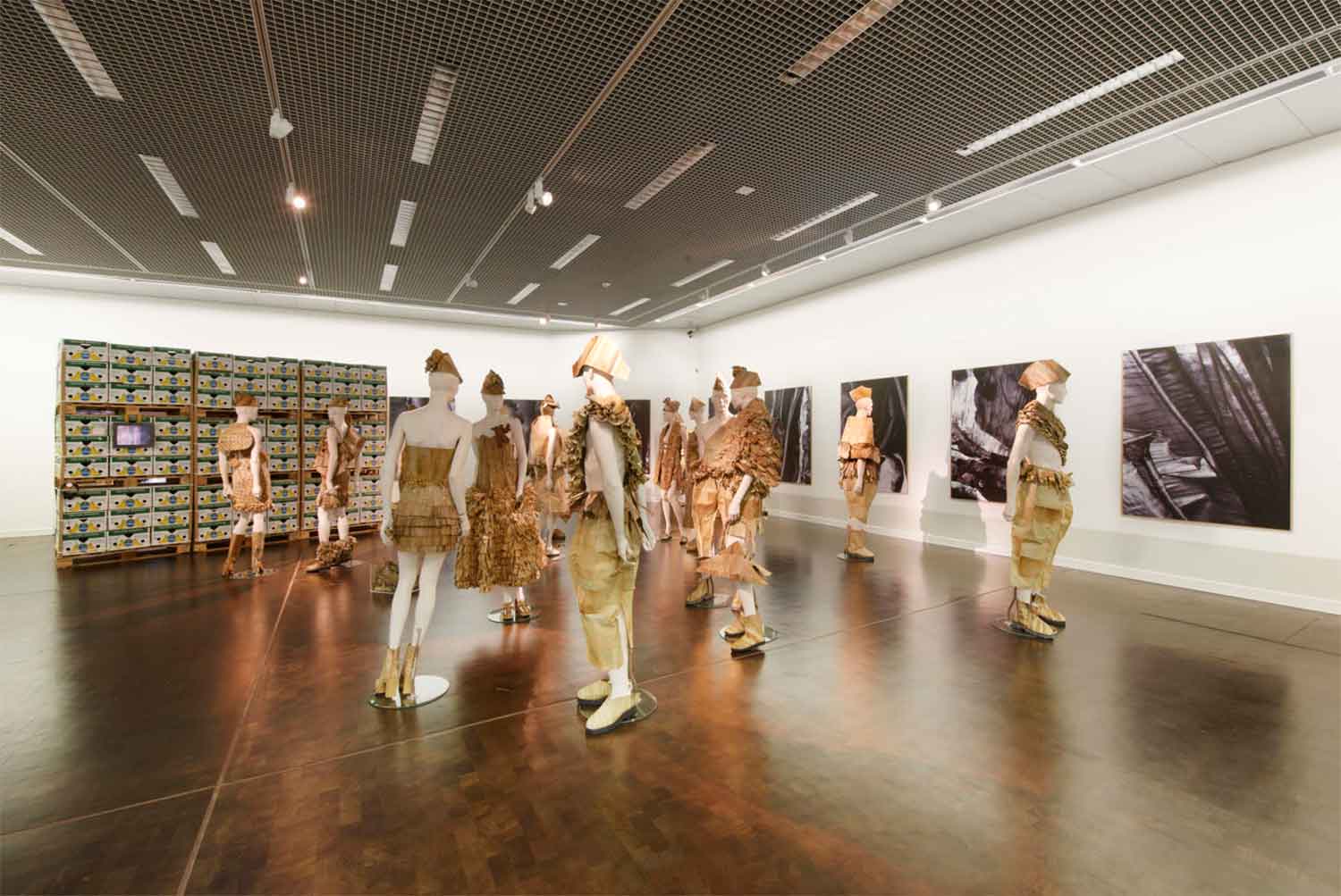 La mise en espace exprime de manière ouverte les quatre thématiques abordées dans l'exposition: